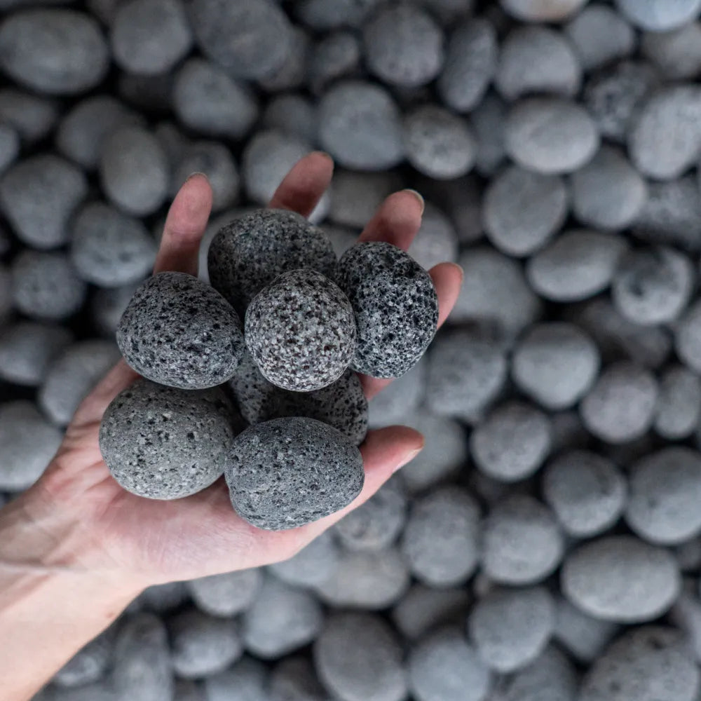 Charcoal Lava Natural Pebbles are rounded grey to black pebbles that resemble pumice stone. The speckled appearance and rough texture will add character and interest to an otherwise uninteresting garden element, such as a water feature or potted plant.