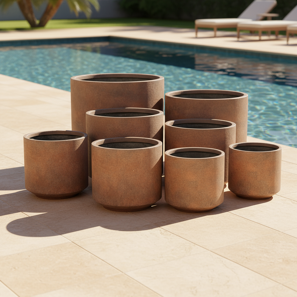 The Fynn Pot boasts a sleek and contemporary aesthetic, providing a modern look that effortlessly enhances your living spaces. Its tall design adds an elegant touch, making it a standout feature in any room or garden. Choose from three distinctive colours – Rust, White, and White Stone – to complement your decor and achieve the desired ambience.